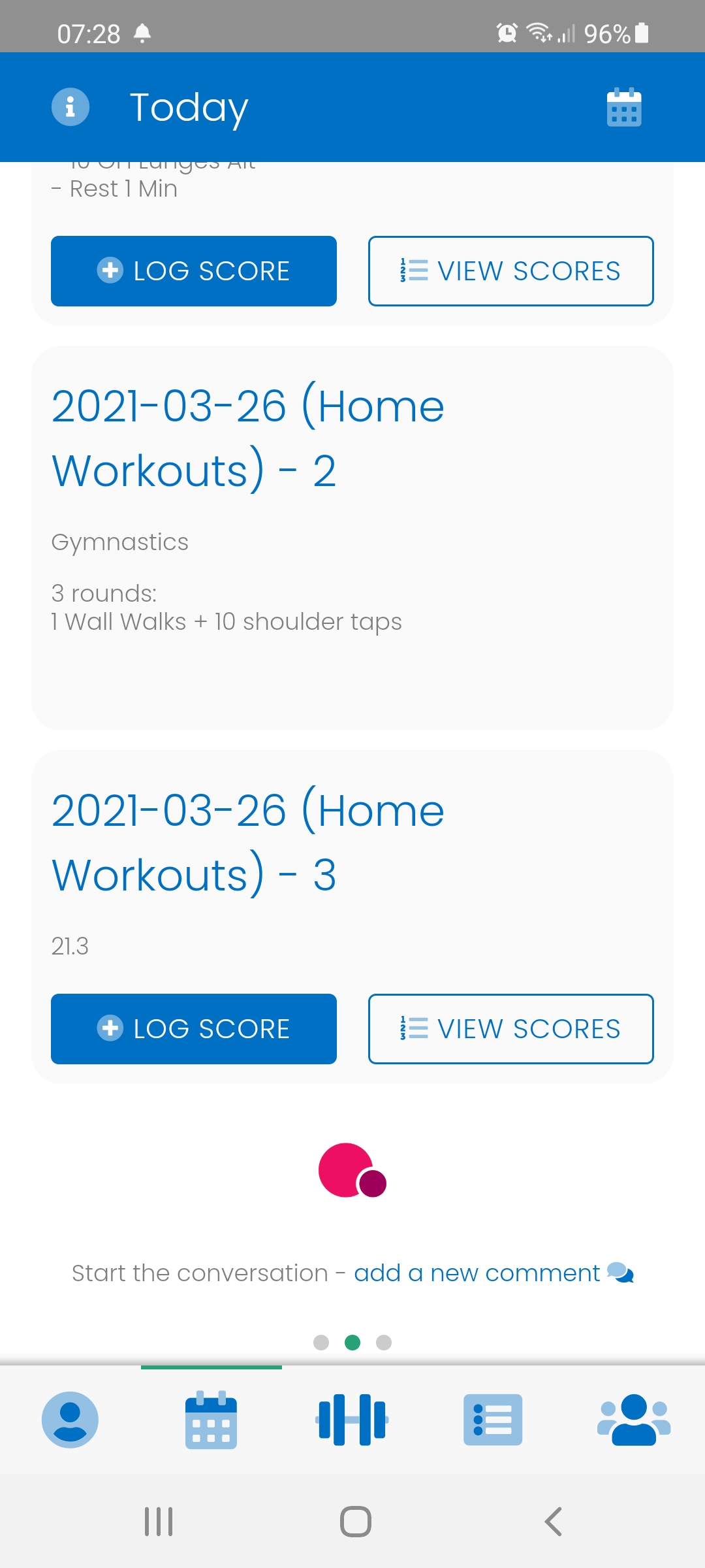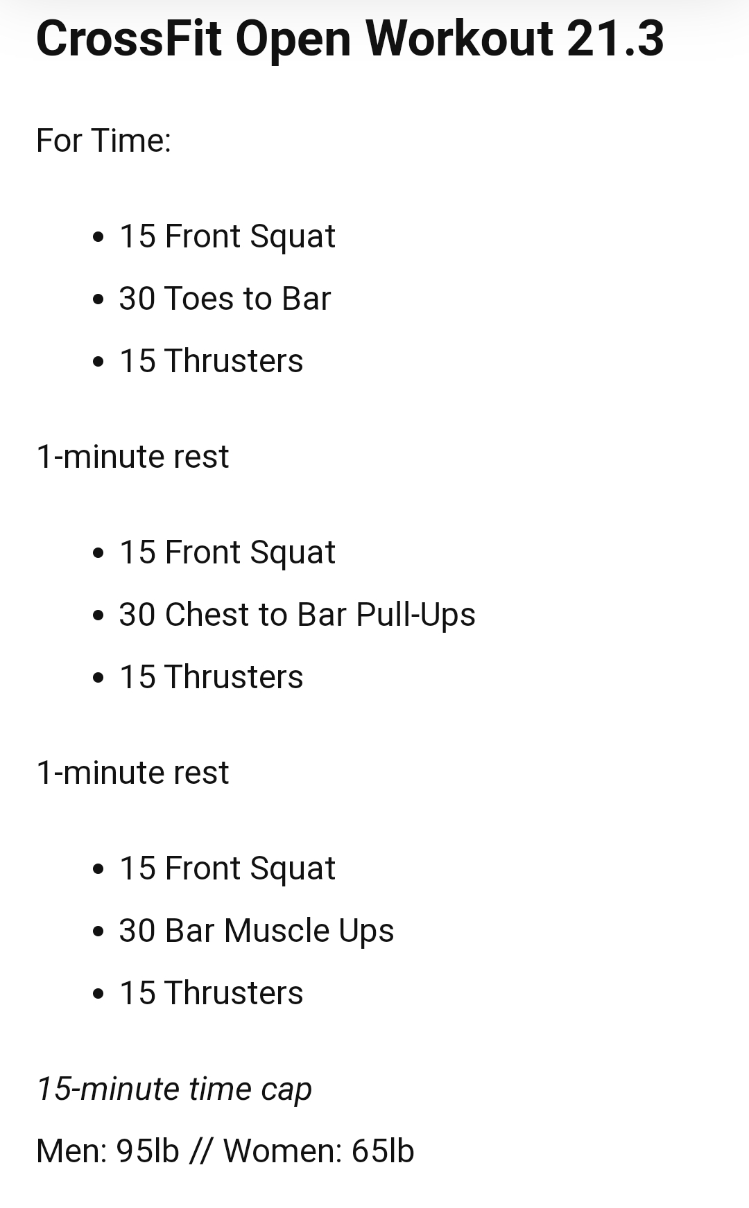 See screenshots for today's workout, which includes CrossFit Open 21.3 and 21.4 should you wish to try them! (Equipment dependent)