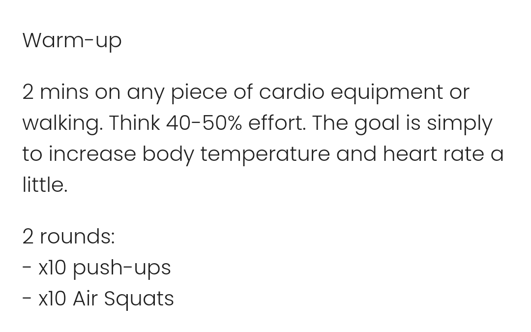 See screenshots below for today's workout. Some strength work and cardio in there to start your week off well!