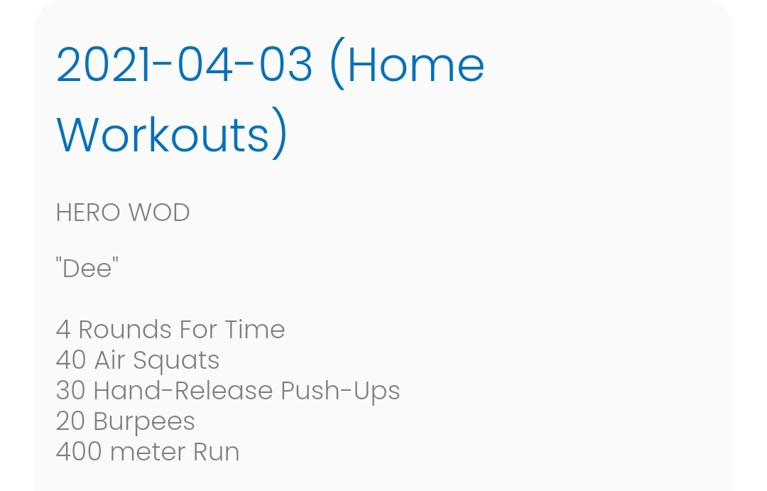 WOD - Saturday 3rd April 2021